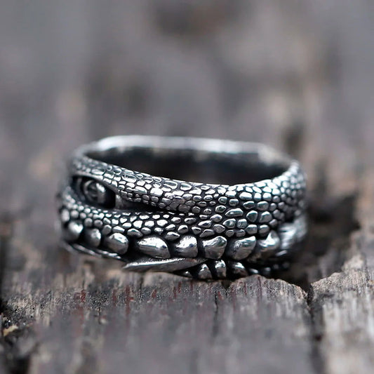 Crocodile Eye Ring Mens - Stainless Steel Silver - Unisex