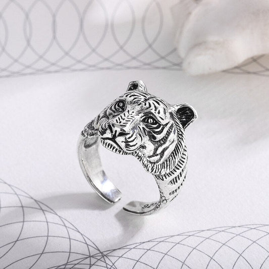 Graceful Mens Tiger Ring - 925 Sterling Silver - Unisex - Adjustable