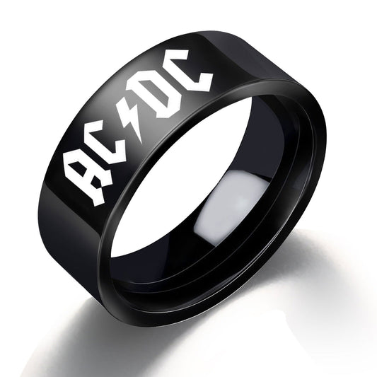 AC/DC Ring Mens Music Ring - Stainless Steel Silver & Black - Unisex