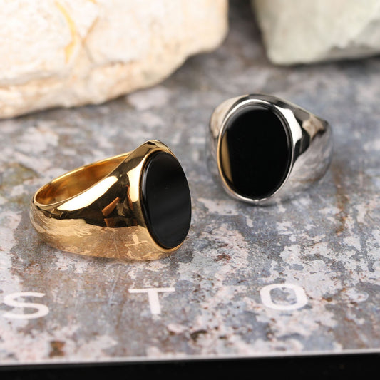 Oval Mens Black Onyx Ring - Gold or Silver - Unisex