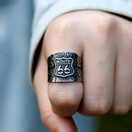 Route 66 Outlaw Biker Ring Mens - Stainless Steel Silver - Unisex