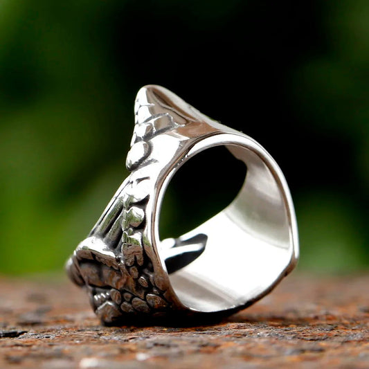 Viking Volcanic Rock Ring Mens - Stainless Steel Silver - Unisex