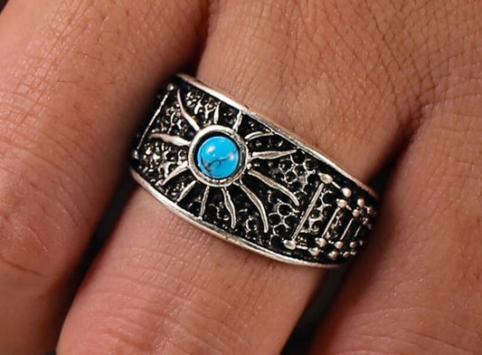 Boho Sun Turquoise Ring Mens - Silver - Unisex