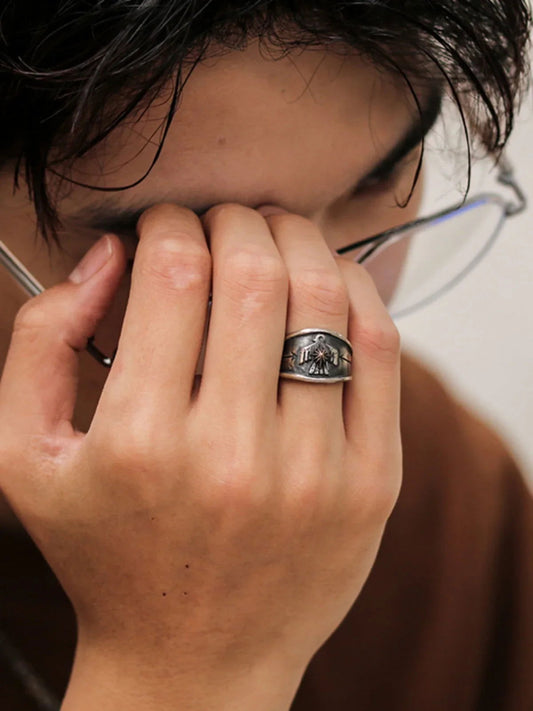 Eagle Cactus Desert Western Ring - Silver - Unisex - Adjustable