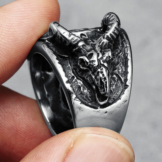 Satanic Skull Baphomet Ring Mens Devil Lucifer - Stainless Steel Silver - Unisex