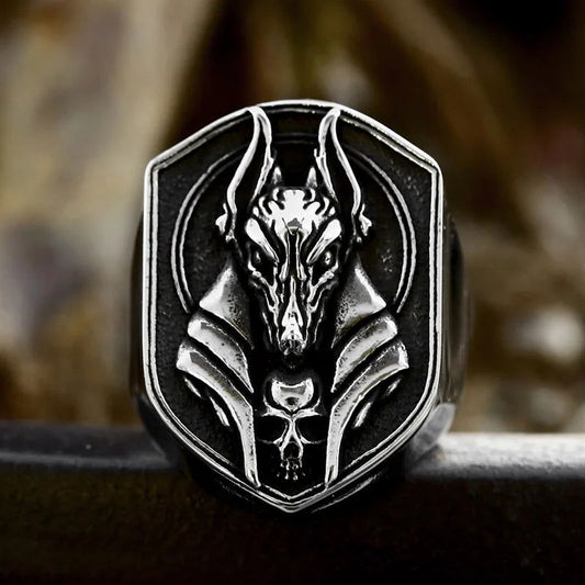 Anubis Ring Ancient Egyptian Mens Skull - Stainless Steel Silver - Unisex