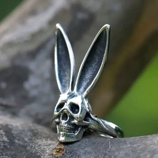 Bunny Rabbit Skull Ring - Stainless Steel Silver - Unisex