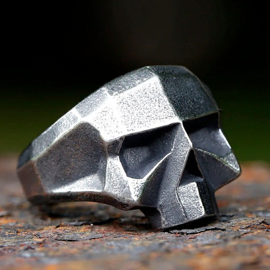 Cyberpunk Geometric Skull Ring Mens - Stainless Steel Silver - Unisex