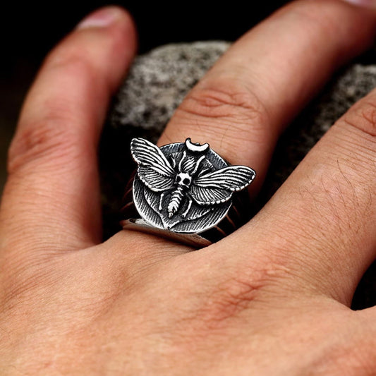 Skull Moth Death's Head Ring Mens - Stainless Steel Silver - Unisex