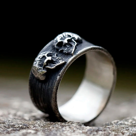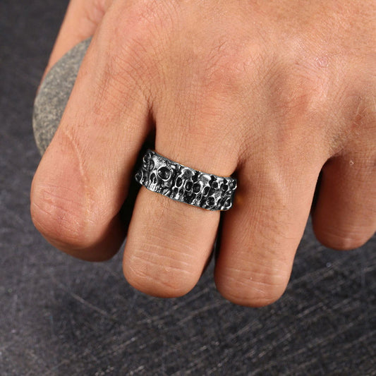 Gothic Cave of Skulls Ring Mens - Stainless Steel Silver - Unisex
