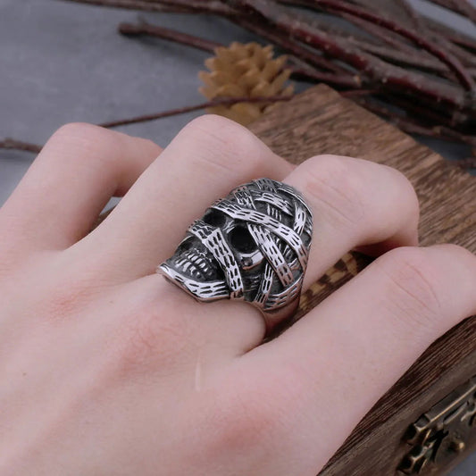 Gothic Wraparound Band of Skulls Ring Mens - Titanium Steel Silver - Unisex