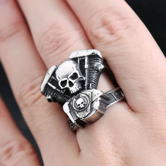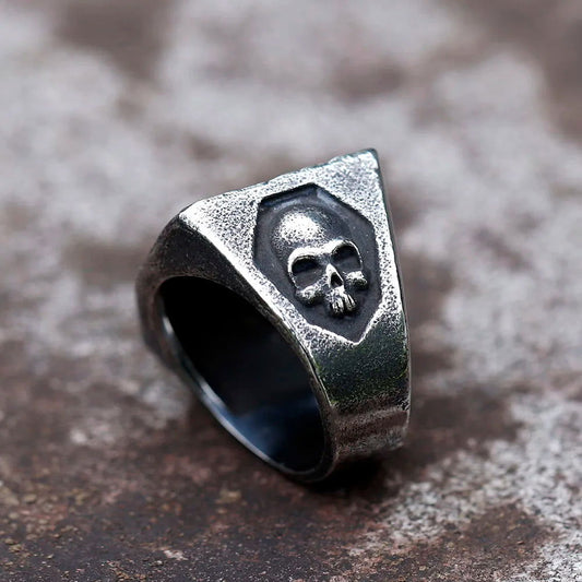 Gothic Mens Skull Ring Octagonal - Stainless Steel Silver - Unisex