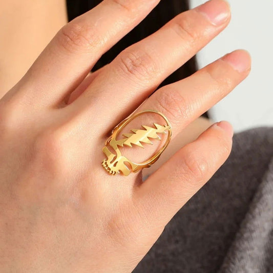 Grateful Dead Ring Lightning Skull Steal Your Face Logo Rock Band Music Ring - Stainless Steel Silver & Gold - Unisex