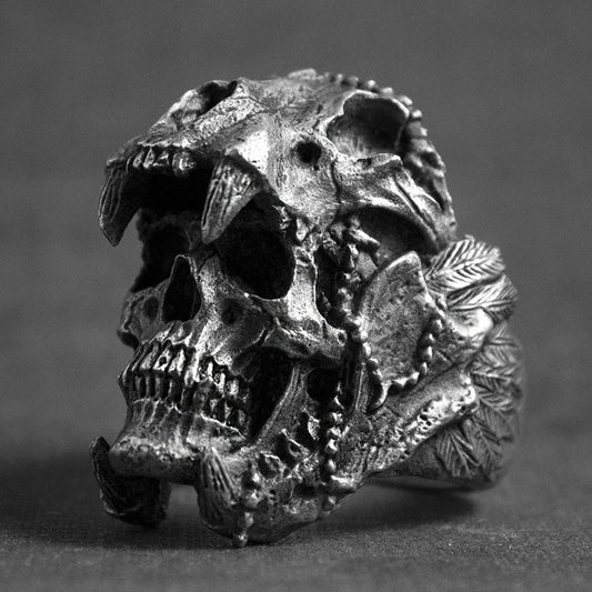 Double Skull Ring Mens - Stainless Steel Silver - Unisex