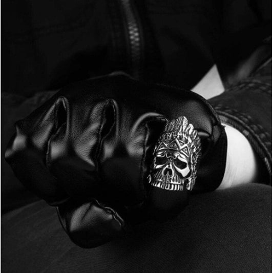 Navajo Native American Skull Indian Chief Ring Mens - Stainless Steel Silver - Unisex