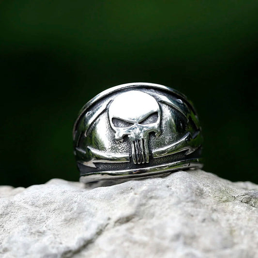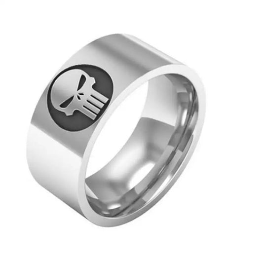 Punisher Skull Logo Superhero Mens Marvel Ring - Titanium Steel Silver & Black - Unisex