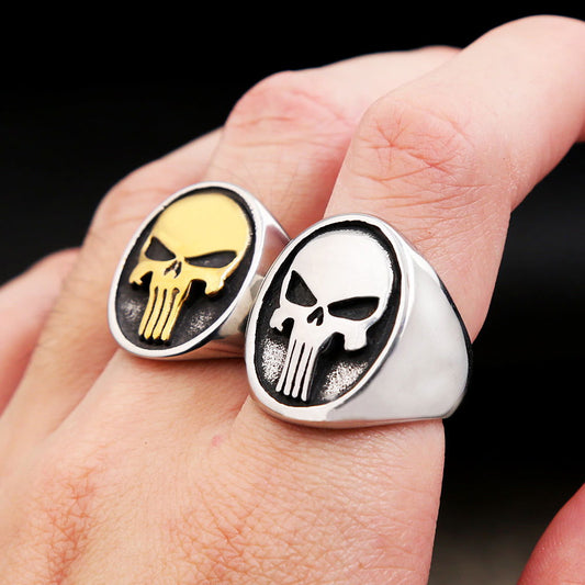 Punisher Skull Signet Superhero Mens Marvel Ring - Stainless Steel Silver & Gold - Unisex