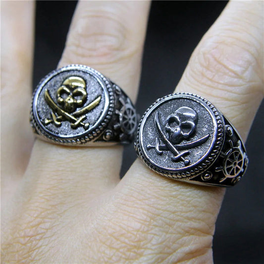 Skull & Crossbones Pirate Ring Mens - Stainless Steel Silver & Gold - Unisex