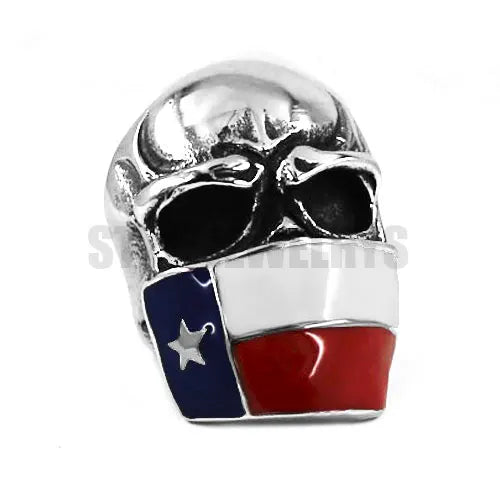 Skull Flag of Texas Mens Ring USA - Stainless Steel Silver - Unisex