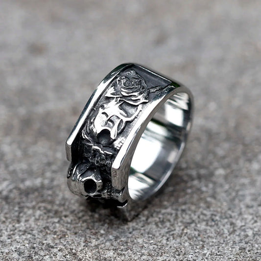 Skull & Roses Mens Ring - Stainless Steel Silver - Unisex