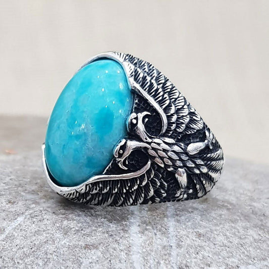 Oval Eagle Mens Turquoise Ring - Silver - Unisex