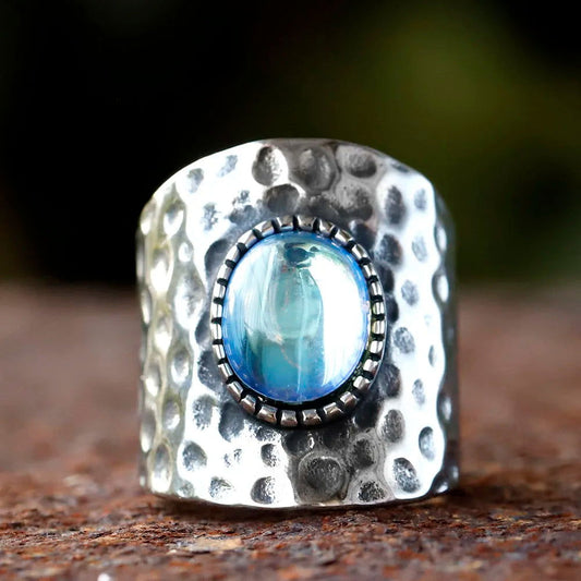 Turquoise Oval Chunky Boho Ring - Stainless Steel Silver - Unisex